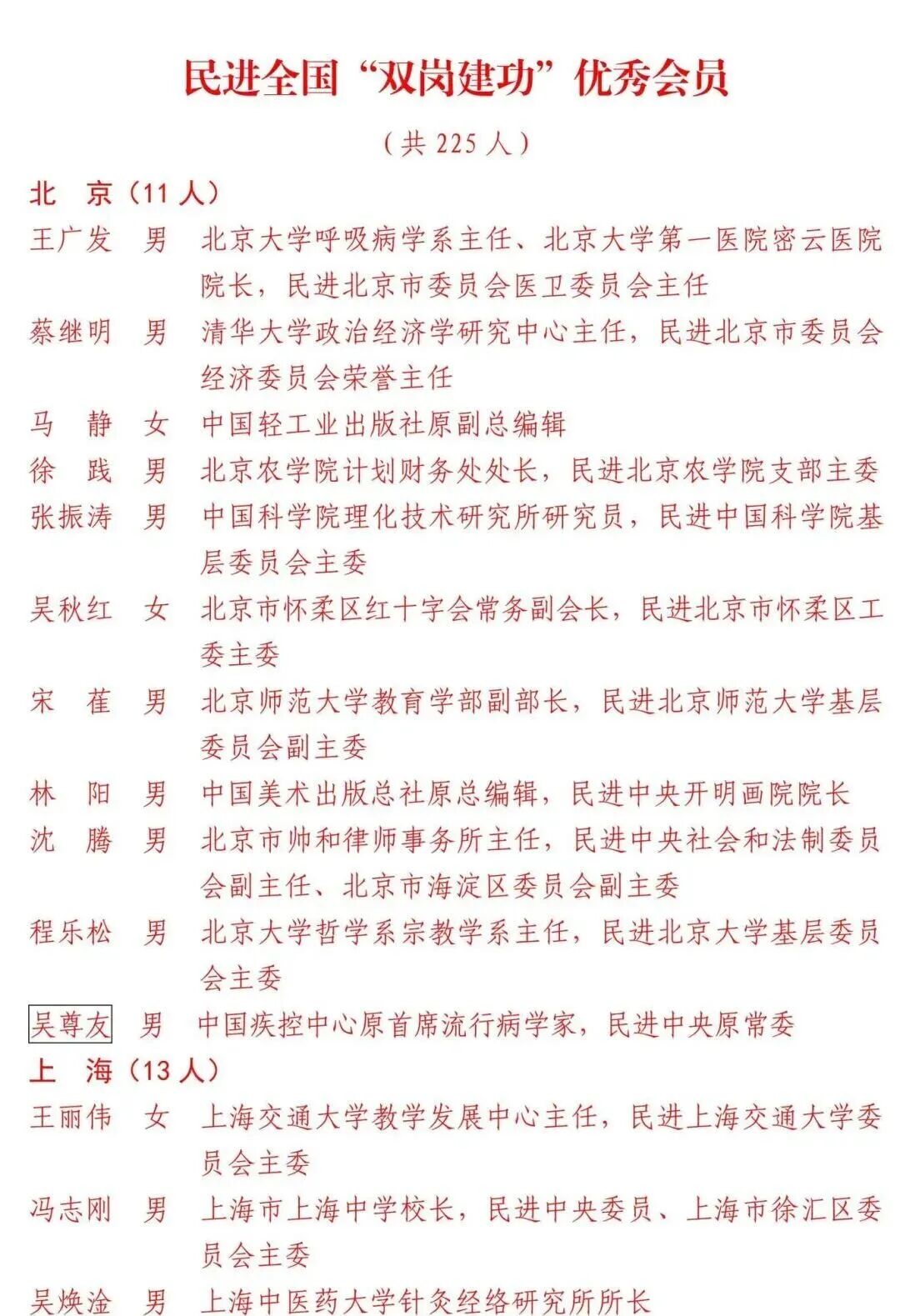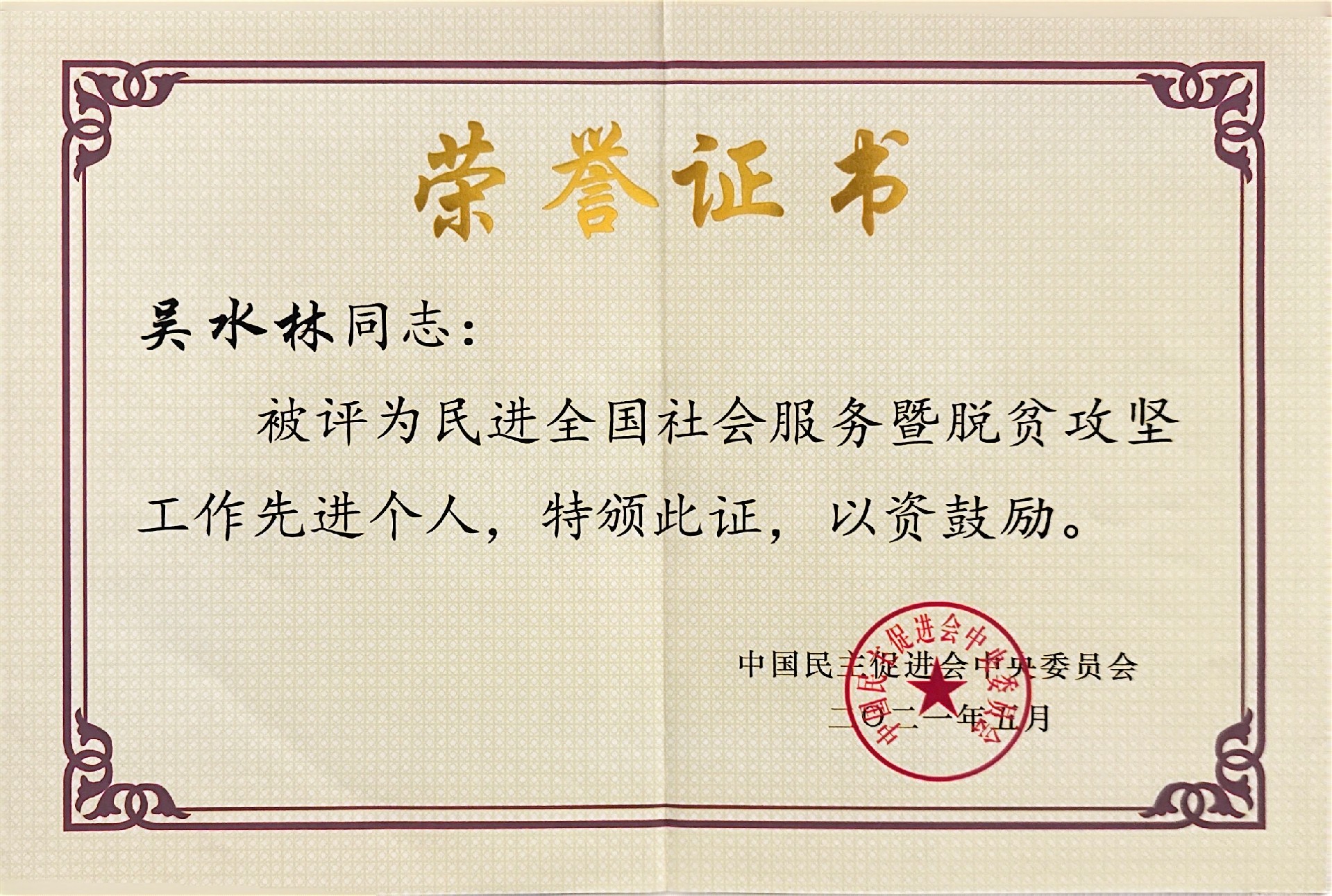 祝贺 ! 董事长吴水林获“民进全国‘双岗建功’优秀会员”