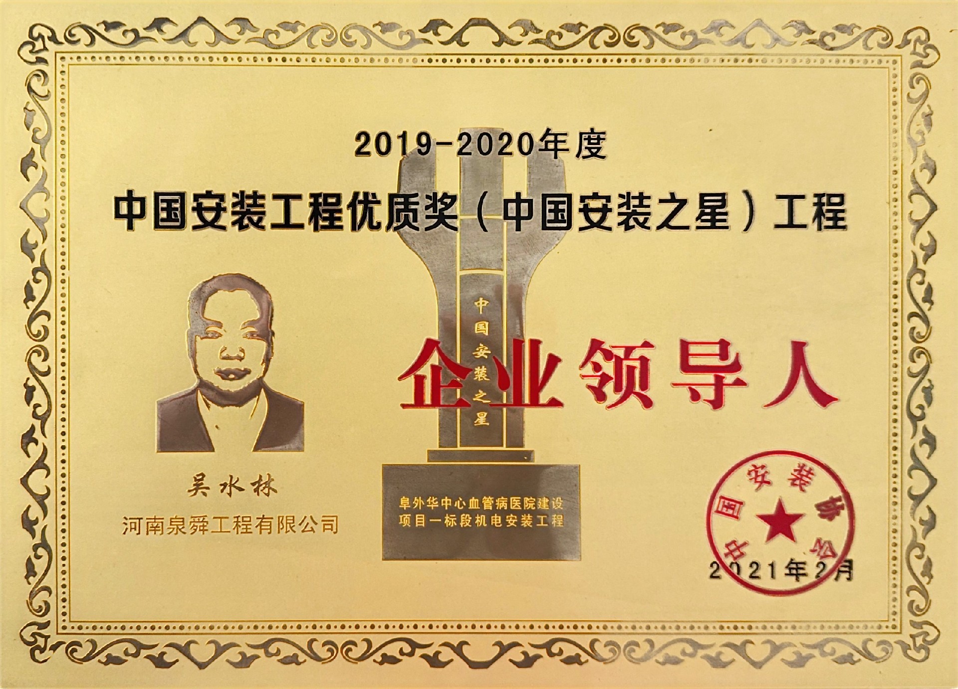 河南民进企业家联谊会会长、泉舜工程董事长吴水林被授予“民进全国‘双岗建功’优秀会员”。