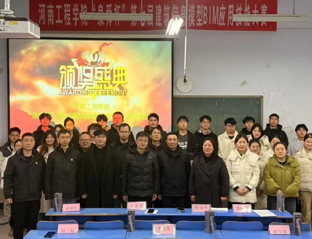 2026年1月7日,由河南泉舜工程有限公司冠名举办的第七届“泉舜杯”BIM应用技能大赛在河南工程学院西校区3107教室举行颁奖仪式。泉舜工程总工程师李永胜,技术开发部李成伟、牧村、韩宗涛应邀参加。会议由河南工程学院土木工程学院副院长张仙平主持,院党委书记卢朝东及部分指导教师和学生代表参加。土木工程学院副院长张仙平 ···